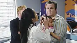 ![]() Cam (Eric Stonestreet) and Mitchell (Jesse Tyler Ferguson) with Lily at the doctor's office | |