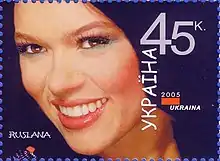 Ukrainian stamp celebrating Ruslana's victory at the Eurovision Song Contest