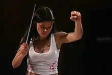 Ruslana Stepanivna Lyzhychko (Ukrainian: Руслана Степанівна Лижичко, IPA: [rʊsˈlɑnɐ steˈpɑn⁽ʲ⁾iu̯nɐ lɪˈʒɪtʃko]; born 24 May 1973),[1] known mononymously as Ruslana, is a Ukrainian singer, songwriter, dancer, producer, actress, activist, and former politician. She is a World Music Award and Eurovision Song Contest winning recording artist,[6] holding the title of People's Artist of Ukraine.[7] She is also a former MP serving as deputy in the Ukrainian parliament (Verkhovna Rada) for the Our Ukraine Party.[8] Ruslana was the UNICEF Goodwill Ambassador in Ukraine in 2004–2005.[9] She is recognized as the most successful Ukrainian female solo artist internationally[10][11] and was included in the top 10 most influential women of 2013 by the Forbes magazine.[12] The U.S. Secretary of State honored her with the International Women of Courage Award in March, 2014.[13] She has been named an honorary citizen of her hometown Lviv[14] and was nominated to receive the title Hero of Ukraine.[15]