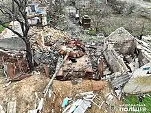 A mass grave was found in the military administration's capital with 27 dead civilians. At the same time, it was emphasized that no mass burial sites were found in the city, as was the massacre in Bucha, Kyiv oblast. All the bodies were buried in individual graves.[33][34][35][36][37] Much of the city was damaged and destroyed.[38][39] A tomato plant, built in 2018,[40] was bombed and destroyed using grad multiple rocket launchers[41][42]