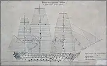 An 1853 drawing of sister ship Velikiy Kniaz Konstantin showing battle damage incurred at the Battle of Sinop.