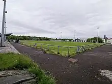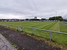 The club plays its home games at Hamish B. Allan Stadium in the Burnhill district of Rutherglen,[5] after the original Southcroft Park on Glasgow Road in the town's Shawfield district was demolished in 2007 to make way for the M74 motorway extension into central Glasgow.[6][7][8] The original ground had survived for 110 years and was the oldest Junior football ground in Scotland when it closed; the final game was a 1–0 victory over Dunipace in October 2006.[9] Its banked terracing areas also contained toxic Chromium VI, a byproduct from the nearby chemical factory;[10] this was also found to be the case at other stadiums in the local area: Lesser Hampden and Rosebery Park.[11][12]