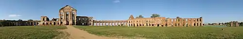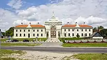 Ruzhany Palace (Belarusian: палац у Ружанах, Polish: Pałac w Różanie)[1] is a ruined palace compound in Ruzhany village, Pruzhany District, Brest Region, Western Belarus. Between the 16th and 19th centuries Ruzhany, then called Różany, was the main seat of the senior line of the Sapieha noble family, known as the Sapiehas of Ruzhany. The castle is currently undergoing systematic reconstruction, with the palace ornate gate and entry building being already restored.