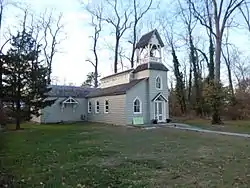 Rye Meeting House, also known as Milton Mission Chapel, Grace Chapel, and the Friends Meeting House, is a historic Quaker meeting house located at Rye, Westchester County, New York. The property is adjacent to the Bird Homestead. It is a one-story, wood-frame building on a stone foundation with two main volumes, a nave and an asymmetrical transept. The exterior is sheathed in clapboard and shingles and exhibits characteristics of the Stick style. The front facade features a 2+1⁄2-story bell tower. The building was built in the 1830s as a school house. It was moved to its present site in 1867, and enlarged in 1871, 1875, and 1877. At the time, the church was a mission church of nearby Christ's Church, an Episcopal church. The Quakers obtained the property in 1959. The property was deeded to the city of Rye in 2002.[2]