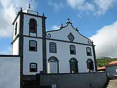 The single-bell tower parochial church is in the lower district in close proximity to the small sea port. It was extensively renovated following historical earthquakes, with a tiled front-facade constructed over quarried rock. A secondary chapel was constructed within the past decades to support the upper congregation in a modernist style. A park was also constructed around the lava flows that destroyed the original church (in 1720).