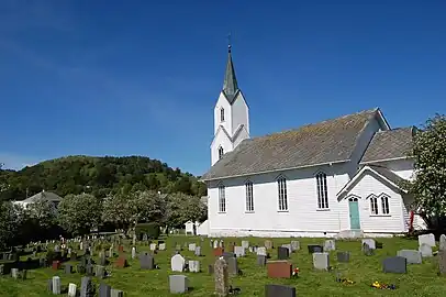 Sæbø Church (Norwegian: Sæbø kyrkje) is a parish church of the Church of Norway in Alver Municipality in Vestland county, Norway. It is located in the village of Sæbø on the island of Radøy. It is one of the four churches in the Radøy parish which is part of the Nordhordland prosti (deanery) in the Diocese of Bjørgvin. The white, wooden church was built in a long church style in 1883 using designs by the architect Karl Askeland. The church seats about 330 people.[1][2]
