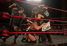 ![]() S.C.U.M. attacking Michael Elgin at Supercard of Honor VII | |