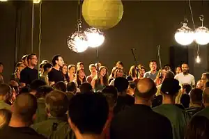 SACRA/PROFANA was founded in 2009 by Krishan Oberoi, a graduate of Yale University. During the choir's first season, the ensemble performed exclusively at the University of San Diego and the San Diego Museum of Art. In 2011, the ensemble began exploring new venues such as San Diego's club Anthology.[6] In May 2011, they were invited by conductor Jung-Ho Pak to perform Friede Auf Erden by Arnold Schoenberg with San Diego's Orchestra Nova.[7] Later in 2011, Pak invited SACRA/PROFANA to perform Messiah by Georg Frideric Handel with the same orchestra. When Orchestra Nova folded in 2012,[8] SACRA/PROFANA stepped in to complete that orchestra's scheduled performance of Messiah.[9]