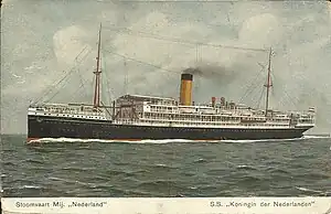 10. 1 2 Zwart, Piet. "SS Koningin der Nederlanden PHMB/PFV 22 juli 1911 – 15 september 1932". De Stoomvaart Maatschappij Nederland. (in Dutch). Retrieved 6 July 2023.