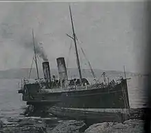 In September 1892 she went aground at Scarlett Point, Castletown, while rounding the south of the Island, homeward bound from Dublin. She was fast aground for two days, and was re-floated after assistance from Tynwald, her passengers having previously been landed onto the rocks by way of a rather precarious ladder from her bows.[2]
