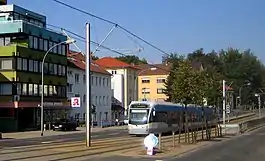 The extension in the northerly direction took place in several stages. It was extended to Cottbuser Platz on 31 July 1999,[1][2] to Siedlerheim on 13 November 2000,[4][2] to Riegelsberg Süd on 24 September 2001[4][2] and to Walpershofen/Etzenhofen on 26 September 2009.[5][2] Construction of the Riegelsberg Süd–Walpershofen/Etzenhofen section, required the contribution of additional costs of around €630,000 per year (an amount that was until recently disputed) from the city of Saarbrücken, the municipality of Riegelsberg and indirectly from the Saarland.[6] Clearing work was performed on the former route of the Koller Valley Railway (Lebach–Völklingen railway) through Walpershofen and Dilsburg in January and February 2009, the railway overpass in the center of Walpershofen was renewed in 2009/10 and the reactivation of Heusweiler Markt was largely completed in the summer of 2011. This stretch of track was inaugurated on 30 October 2011.[5][7][2]