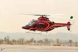 This Iranian-made helicopter is capable to be applied[11][12][13][14] as air ambulance/taxi. According to Hossein Dehqan, the Iranian Defense Minister Brigadier General, it has the utilization of modern-technologies in the field of navigation/conduct/mechanical systems, high-speed, remarkable-reliability, acceptable function with sole engine, low-sound and vibration, operating temperature range of -25 °C to 55 °C and also an aerodynamic body.[15][16][17]