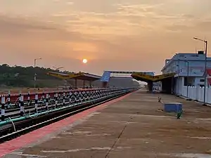 The Sabroom railway station is the terminus railhead of the 113 km long 1,676 mm (5 ft 6 in) broad-gauge AgartalaSabroom railway line which comes under the Lumding railway division of the Northeast Frontier Railway zone of Indian Railways. It is a single line without electrification. On 3 October 2019, the first DEMU serving Agartala–Sabroom performed its inaugural run after the construction of railway line was completed. In 2016, 43 km long segment from Agartala to Udaipur near Mata Tripura Sundari temple was completed. On 3 October 2019, the remaining Udaipur-Sabroom segment was also completed.[2][3][4][5]