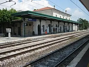 Sacile (Italian: Stazione di Sacile) is a railway station serving the town of Sacile, in the region of Friuli Venezia Giulia, northern Italy. The station opened in 1855 and is located on the Venice–Udine railway and Sacile-Pinzano railway. The train services are operated by Trenitalia.
