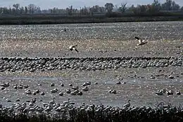 Before the arrival of European settlers in the 19th century, much of the Sacramento valley was taken up by seasonal wetlands and grasslands. By the beginning of the 20th century, much of this had been replaced by farmland, particularly for the growing of rice, and the rivers no longer create new wetlands because their flow is controlled by levees and irrigation schemes. Less than 10% of the original wetland area remains. Migrating birds have continued to use the area, and resting in the rice fields, consumed considerable quantities of the crop.