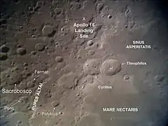 By convention these features are identified on Lunar maps by placing the letter on the side of the crater midpoint that is closest to Sacrobosco.