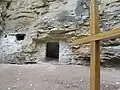 The "Holy Trinity" Monastery of Saharna,[1] situated about 110 km north of Chișinău, on the west side of the Nistru River, is considered to be one of the biggest centres for religious pilgrimages in Moldova. Here can be found the unique relics of the Blessed Macarie, and on the top of the high cliff, according to a legend, there is a footprint of St. Maria, the Mother of Jesus. The legend says that a monk from the monastery once saw the shining figure of Saint Maria on the top of a rock. When reaching that spot the monk saw a mark of a footstep on the ground.