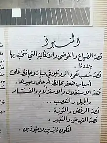 Said Mahmoud Takieddine (Arabic: سعيد محمود تقي الدين; 15 May 1904 – 10 February 1960) was a Lebanese playwright, author, journalist, activist, and businessman. His plays were known to portray various political, social, and philosophical themes.[1] He was the president of the alumni association at the American University of Beirut (AUB).[2] He was also the dean of information and foreign affairs in the Syrian Social Nationalist Party (SSNP) for a short period.