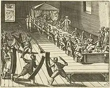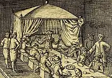 Saidi Berkat entertains Jacob van Neck and his men, illustration from about 1654.