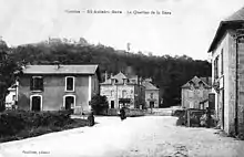 Old photo of he passenger building and the level crossing at Saint-Aulaire station in Corrèze