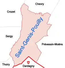 Saint-Genis-Pouilly (French pronunciation: [sɛ̃ ʒəni puji]; Arpitan: Sant-Genés-Polyi) is a commune in the Ain department within the Auvergne-Rhône-Alpes region of eastern France.