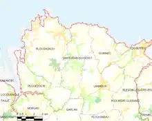 The Saint-Jean-du-Doigt Parish close (Enclos paroissial) is located at Saint-Jean-du-Doigt In the arrondissement of Morlaix in Brittany in north-western France. The enclos paroissial comprises the church of Saint-Jean-Baptiste, a large ornamental fountain, the cemetery, two ossuaries attached to the church and an enclosing wall with an "arc de triomphe" style entrance. Saint-Jean-du-Doigt is some 12 kilomètres northeast of Morlaix. The church dates back to around 1440 when the Duke of Brittany, Jean V, founded the church as a suitable place to hold the John the Baptist relic (see note below). This relic reputedly has the power to restore sight. The church, fountain, double cemetery gate, funeral chapel and the cemetery and its wall are listed historical monuments.[1]