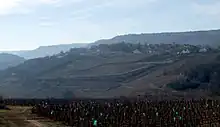 Saint-Romain wine is produced in the commune of Saint-Romain in Côte de Beaune of Burgundy. Rather than being situated on the main Côte d'Or escarpment, as most of the other Côte de Beaune wine villages, the vineyards of Saint-Romain are mainly located in a side valley to the west of Auxey-Duresses, in the direction of the communes and vineyards of the Hautes Côtes de Beaune. Most vineyards of Saint-Romain are located on slopes of various directions. The Appellation d'origine contrôlée (AOC) Saint-Romain may be used for red and white wine with respectively Pinot noir and Chardonnay as the main grape variety. A little more than half of the production consists of white wine. There are no Grand Cru and no Premier Cru vineyards within Saint-Romain.