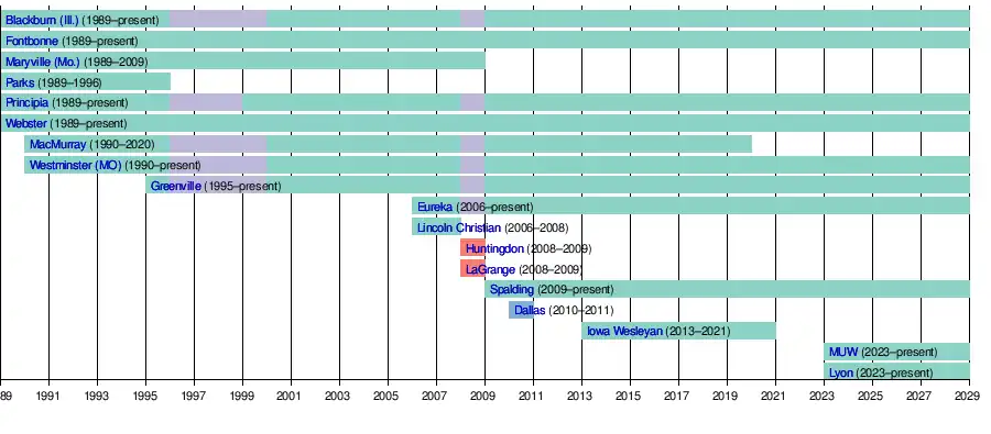 - September 1989: The SLIAC chartered with Blackburn, Fontbonne, Maryville, Parks, Principia, and Webster the original members.