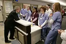 President George W. Bush vists with Saint Luke's East Hospital staff in 2007