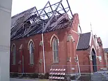 On April 13, 2006, the Iowa City area was hit by an F2 tornado. During the course of the storm, St. Patrick's Church was heavily damaged. Most of the roof of the church building was torn off during the storm, and the 80-foot steeple was knocked over as well. The adjoining rectory also sustained damage. As Holy Thursday services had taken place on this date, there were people present at St. Patrick's during the storm. The Mass of the Lord's Supper had finished just before the storm. People took shelter in the basement of the rectory. No one at the church at the time was injured or killed.