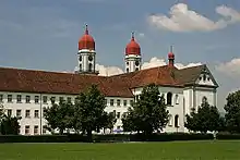 The first mention of a school at the Abbey was in 1470. By 1500, it became a center of humanism and reform scholarship. The school remained in operation over the following centuries and in 1780 it became the first teacher training college in Switzerland. From 1841-47 it was the cantonal teacher training college.[2]