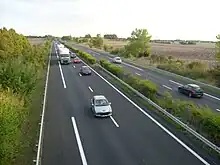 The A10 autoroute (France), operated locally by Autoroutes du Sud de la France, passes through the commune in its western part, in a north–south axis. It can be accessed by the interchange 35. By the A10, Saintes is 125 km (78 mi) from Bordeaux, 140 km (87 mi) from Poitiers, 470 km (290 mi) from Paris.