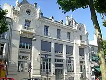 The cours Reverseaux and cours des Apôtres de la liberté separate Saint-Eutrope (and its hill) in the west from the faubourg Berthonnière. These partly separate the hill of the Capitole to the north. Once outside-of-the-walls, the faubourg included some hostelries and inns for pilgrims.[12] The streets of the faubourg converge toward the place Saint-Louis, the place de l'Aubarrée and the place Blair, dominated by a column of Liberty (in France popularised as fictional Marianne at the time) erected during the Revolution.[13] The square Goulebenéze stands between the place Blair and the river.
