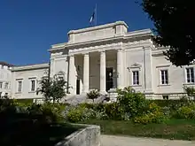 The neighborhood of Saint-Pallais was probably urbanized in antiquity. Structured around the main access way of the Roman city, it was then linked to the town center by a bridge with a monumental entrance, the Arch of Germanicus. During the Middle Ages, a funeral basilica, dedicated to the bishop Palladius, was established (and later replaced by the église Saint-Pallais, which gives its name to the neighborhood), then a Benedictine abbey of women amongst the largest in the region, the Abbaye aux Dames de Saintes. The presence of this monumental heritage led to the integration of part of the neighborhood in a conservation area. It was during the 19th century that the neighborhood began to develop. The antique bridge was destroyed and replaced in 1879 by the pont Bernard-Palissy, a few meters upstream ; the avenue Gambetta and the place Bassompierre are created ; the train station, the Gare de Saintes, the prison, the Haras national de Saintes, the parc Pierre-Mendès France, the Jardin public Fernand Chapsal and the protected area of the prairie de la Palu[12] were subsequently created.