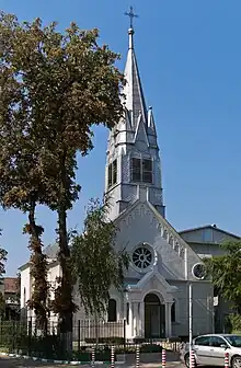 Initially, the parish functioned in a chapel dedicated in 1864, serving a local Catholic community drawn from various nationalities: Germans or Transylvanian Saxons, Austrians, Czechs, Poles, Italians and Hungarians. The current building was constructed in 1895-1896, and expanded in 1996. A new parish house was built between 1990 and 1996. The church has a choir and participates in cultural and charity activities. The parish has its feast day on June 29, and it is part of the Bucharest Archdiocese.[1] The building is considered a historic monument by Romania's Culture Ministry.[2]