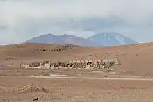 Salar de Ascotán, also known as Salar de Cebollar, is a salt flat in northern Chile. Its drainage basin is 1,455 square kilometers (562 sq mi) and is shared with Bolivia.[1] The basin is bordered on the north by the Salar de Carcote basin, on the east by small endorheic basins, including those of Laguna Cañapa and Laguna Hedionda, from which is separated by the crest of the Cerros de Cañapa, Cerro Araral and others. To the south, the basin is bordered by the San Pedro de Inacaliri River basin, while to the west the drainage divide between the salt flat and the Upper Loa River basin is marked by the summits of a chain of volcanoes culminating in Palpana.
