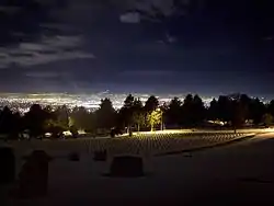 The northern section of the cemetery at night, looking towards Salt Lake City