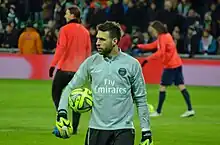 Sirigu warming up for Paris Saint-Germain before a match against AS Saint-Étienne in January 2015