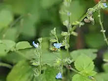 Salvia misella, commonly known as tropical sage,[1] is an annual herb growing throughout tropical America, often found in semi-arid regions on disturbed bushy ground, from sea level to 2,200 metres (7,200 ft). It is similar and perhaps closely related to Salvia occidentalis, with a longer calyx (7 millimetres (0.28 in)) and a 5 millimetres (0.20 in) blue flower.[2]