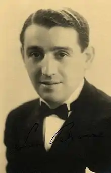 Browne's work with Ambrose took him to Monte Carlo and Biarritz, coupled with regular radio broadcasts from the May Fair Hotel. Browne and Elsie Carlisle became a popular singing pair with Ambrose. Popular duets with Elsie include "What Wouldja Like for Breakfast?" and "I'm Gonna Wash My Hands of You". They appeared together in the Royal Variety Performance in 1935.[3] Browne also appeared in the 1950 Royal Variety Performance as part of a presentation titled "The Band That Jack Built"[4] and in the 1951 show as "Sam Browne and His Singers".[5]