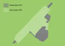 The airport authority also plans to build a new passenger terminal (completion 2023), with an area measuring 120,000 square metres (1,300,000 sq ft).[43] Additional cargo terminal, 133,895-square-metre (1,441,230 sq ft) cargo facilities and 68,000-square-metre (730,000 sq ft) aircraft maintenance facilities will be built as well.[40] The project began in 2020, cost US$22.7 million and expected to be completed in 2023.[44][45][46]