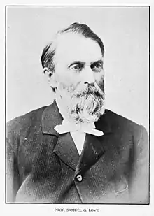 Samuel Gurley Love (30 May 1821-12 November 1893) was an American teacher and educationist. He taught at public schools in Buffalo, Randolph and Jamestown where he was the first principal and superintendent. He was an advocate of all-round education. An elementary school is now named after him.