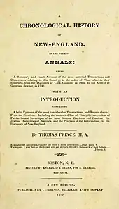 ![]() A chronological history of New-England, by Thomas Prince, 1736, printed by Kneeland and Green, Boston |