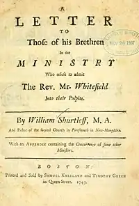 The first religious newspaper in the world, a weekly entitled The Christian History, was established by Reverend Thomas Prince, of Boston, whose son, Thomas Jr. was the editor who commissioned Kneeland & Green in 1743 to conduct its printing. In its time it received much criticism and was only published for two years, but it remained an authoritative account[lower-alpha 10] in many aspects thereafter.[31][32][33]