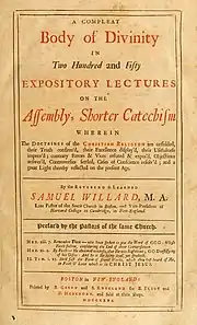 - Willard, Samuel (1726). A compleat body of divinity in two hundred and fifty expository lectures. Boston in New-England : Printed by B. Green and S. Kneeland for B. Eliot and D. Henchman.