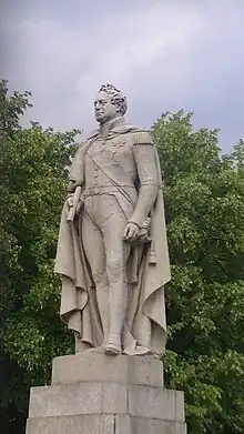 Nixon's workshop was at 2 White Hart, Bishopsgate (1838–1854). Nixon worked for his friend Henry Doulton who established Royal Doulton.[2] He is most well known for the Devonshire granite sculpture of William IV (1844), which was originally located near London Bridge on King William St. and was moved to Greenwich in 1935. Gentleman's Magazine called it "a striking and imposing object… a masterpiece" and "one of the chief ornaments of the City of London." It was, they wrote, "admired by all who are capable of appreciating artistic genius."[3]
