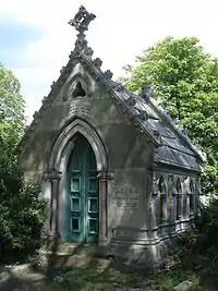 In 1874 Wilson gave the University of Melbourne £30,000 which with accrued interest was expended on a building in the Gothic style now known as the Wilson Hall. It was the most considerable gift or bequest that the university had received up to then. In the following year he was elected a member of the Victorian Legislative Council (1875-1881) and Legislative Assembly (1861-64) for the Western Province, but he never took a very prominent part in politics. Around that time he purchased the magnificent Ercildoune property for a rumoured £250,000.[7] About the beginning of 1881 he went to England with his family and leased Hughenden Manor, once the property of the Earl of Beaconsfield. He twice contested seats for the House of Commons without success, but in 1886 was elected as a Conservative for Portsmouth and sat until 1892. In September 1893 he again came to Victoria and stayed until March 1895. He became ill soon after his return to England and died on 11 June 1895, and is buried in Kensal Green Cemetery, London.