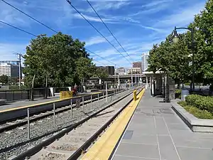 San Fernando station is a light rail station operated by Santa Clara Valley Transportation Authority. The station has two side platforms and two trackways. San Fernando station is served by the Green Line of the VTA light rail system.