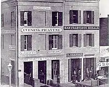 The San Francisco Herald, or San Francisco Daily Herald,[lower-alpha 1] was a newspaper that was published from 1850 to 1862 in San Francisco, California. The paper stood out aggressively against crime and corruption associated with the California Gold Rush. The editors fought several duels with men whom they had offended. In 1856 the paper attacked the Vigilance Committee, which was taking the law into its own hands. Supporters of the committee withdrew their subscriptions and advertising, almost forcing the newspaper to close. However, the newspaper continued to be published with smaller circulation until 1862.