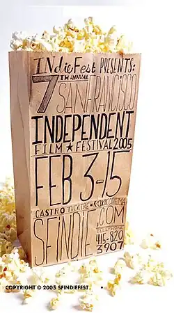 The San Francisco Independent Film Festival was founded in 1998 by Jeff Ross, operations manager of the San Francisco International Film Festival and office manager of the San Francisco Film Society,[2][3] at the end of a decade when independent films had increased in importance.[4] The impetus was that San Francisco independent filmmaker Rand Alexander was unable to find a venue in the city to show Caged, which had premiered at the Slamdance Film Festival.[5][6] The first festival took place in January 1999[7][8][9] and comprised 20 films,[5] with a focus on experimental and otherwise unconventional works.[10] The second IndieFest was held in January 2000,[2] expanding from four days to nine,[11] and the festival has continued to take place in January or February and further expanded to two weeks.[6][12] The 2000 IndieFest added cartoon shorts;[2] in 2002, despite losing corporate sponsorship in the wake of 9/11, the festival added foreign films.[13] Ross directed the festival alone until a program director, Bruce Fletcher, was added.[8]
